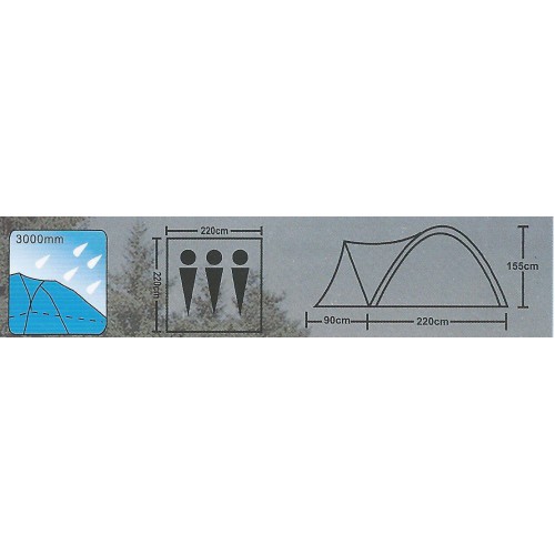 • Ткань тента: Polyester PU 190T, водонепроницаемость 3000 мм;