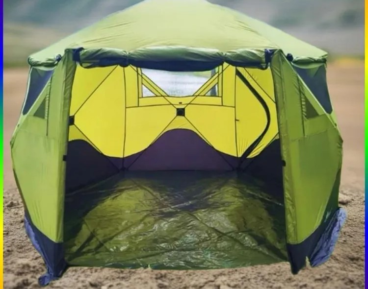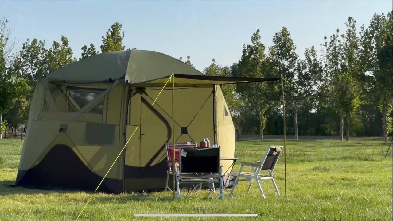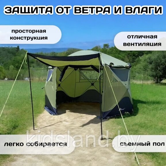 Идеальный шатер для дачи и активного отдыха на природе. Легко устанавливается, защищает от дождя и вмещает до 6 человек.