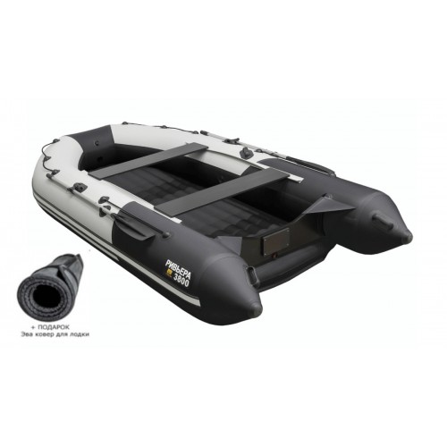 Надувная лодка из ПВХ Ривьера Компакт 3800 НДНД под мотор светло-серый/графит (+ коврик EVA)
