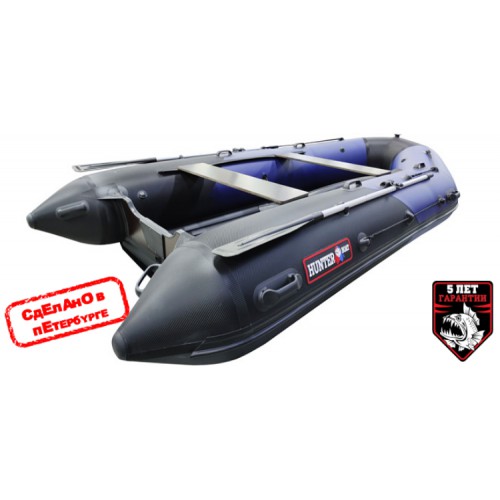 - Эксклюзивный черный материал плотностью 1050 гр/м.кв с тиснением "карбон" придает индивидуальность внешнему виду лодки;