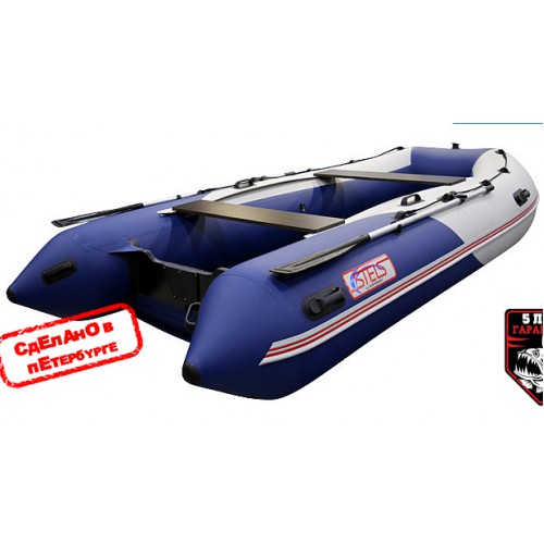 Надувная лодка СТЕЛС 375 АЭРО со стационарным вклеенным умеренно-килевым дном низкого давления (НДНД) рассчитана на использование с мотором до 20 л.с. с максимальной загрузкой до 700 кг. Предназначена для рыбалки, охоты и активного отдыха на воде небольшой компанией. Выпускается в комбинированном сине-белом цвете.