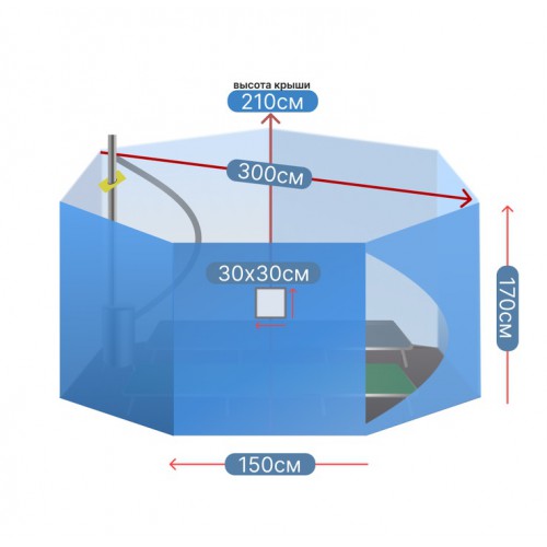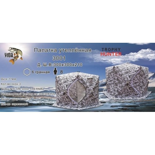 Идеальное решение для зимней рыбалки. Палатка обеспечивает защиту от ветра, дождя и низких температур, а продуманная конструкция самого тента позволяет установить её в течение 30 секунд. Палатка имеет вентиляционные окна. Прочный, влагоотталкивающий материал тента не продувается и при использовании палатки в светлое время суток пропускает свет за счет окон.